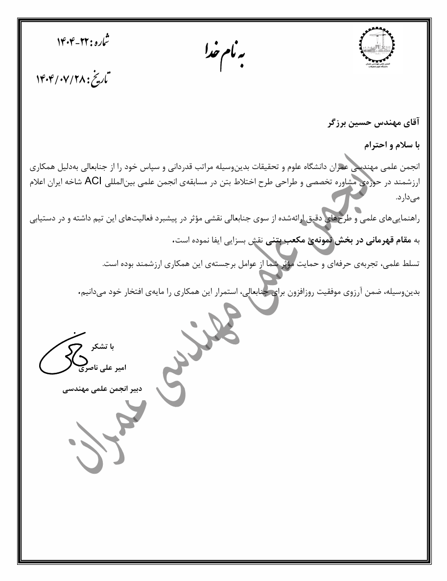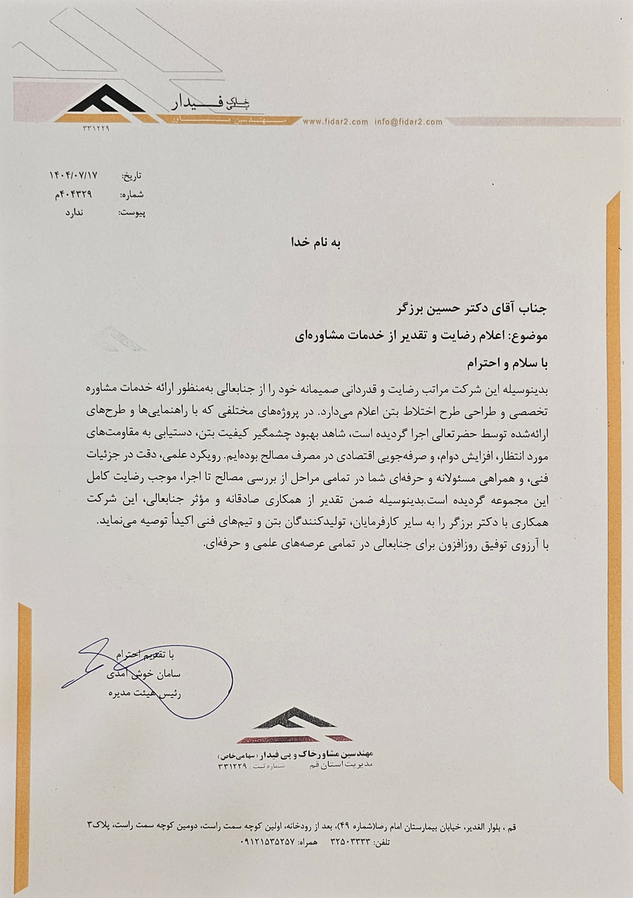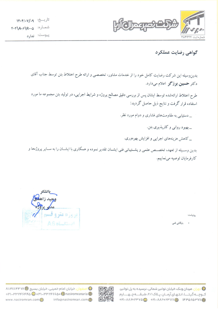 رضایت نامه کارخانه بتن آماده شهاب بتن طبرستان - مسابقات بتن کشور